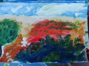 Fiery scene, painting of an 8-year old. Children's Art Workshop, 2017